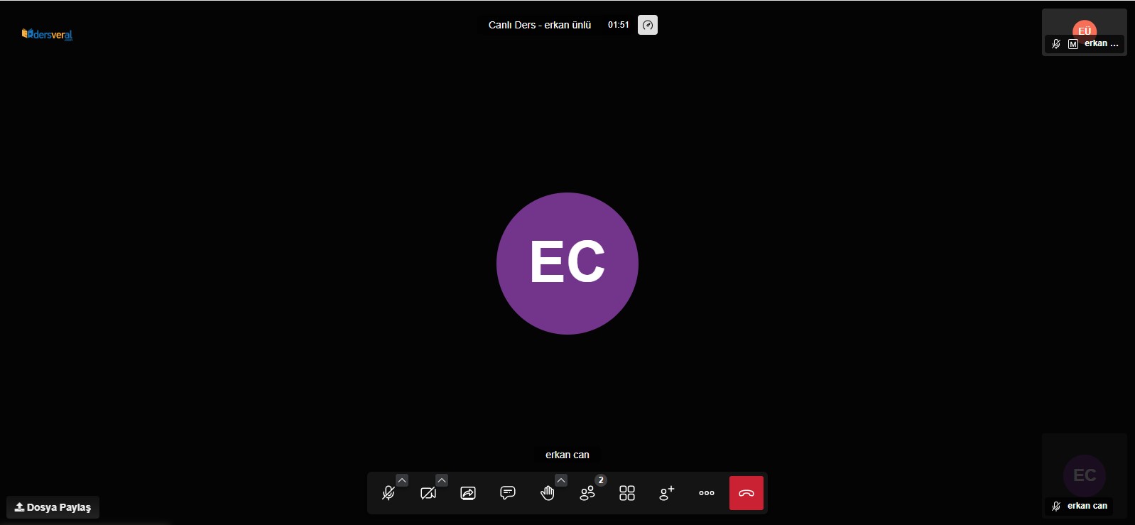 Canlı Ders Başlat butonu ile dersinizi başlatın. Sistem siszi otomatik olarak canlı ders odasına yönledirecektir!
